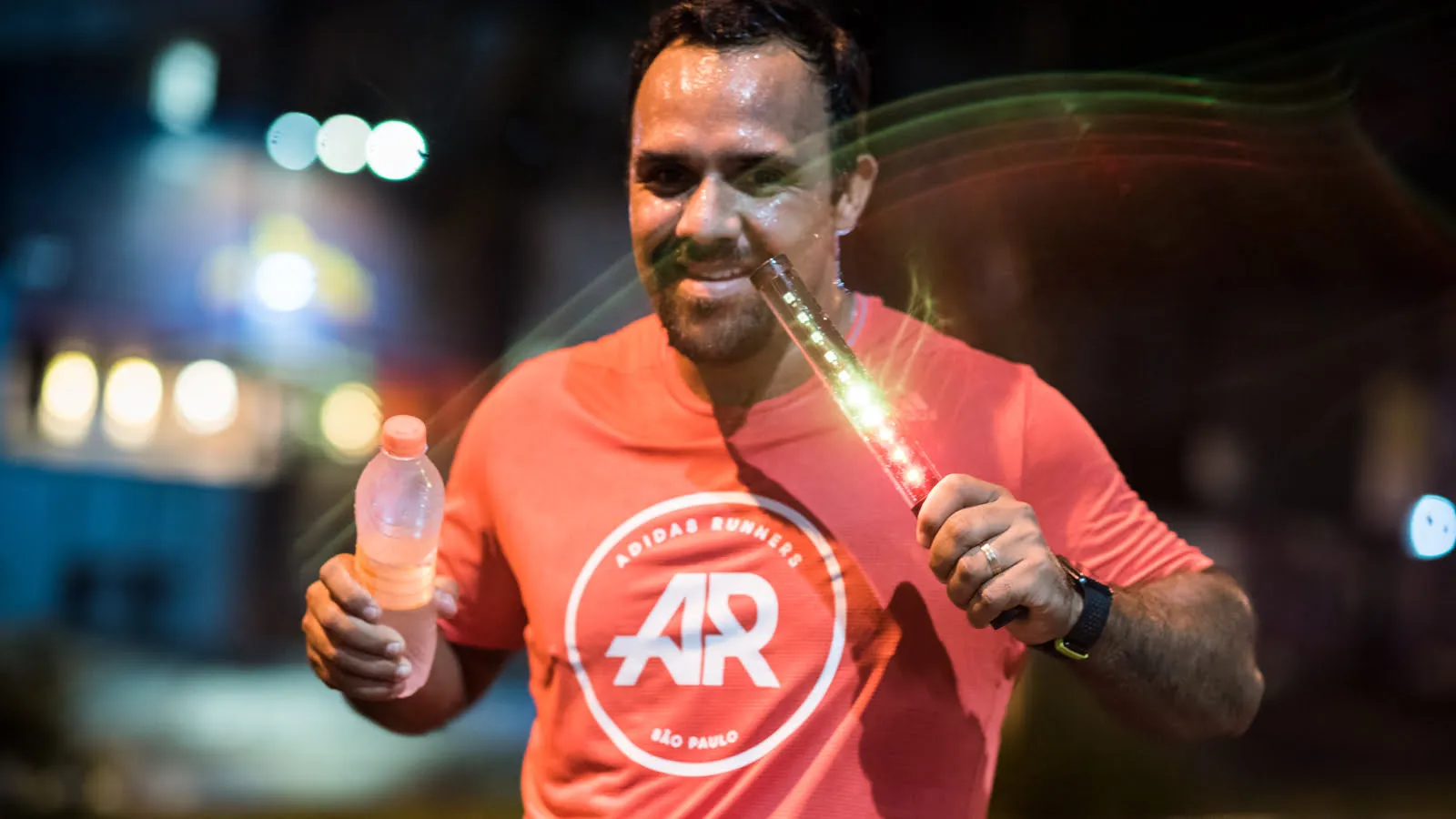 Criamos o bastão da Adidas que se ilumina à medida que os participantes avançam na corrida. Quanto mais passos são dados rumo à chegada final, mais luzes ficam acesas no bastão. Ao final da corrida, os participantes colocaram seus bastões em uma instalação artística, formando um imenso painel que transmitia o conceito da Adidas UltraBOOST.