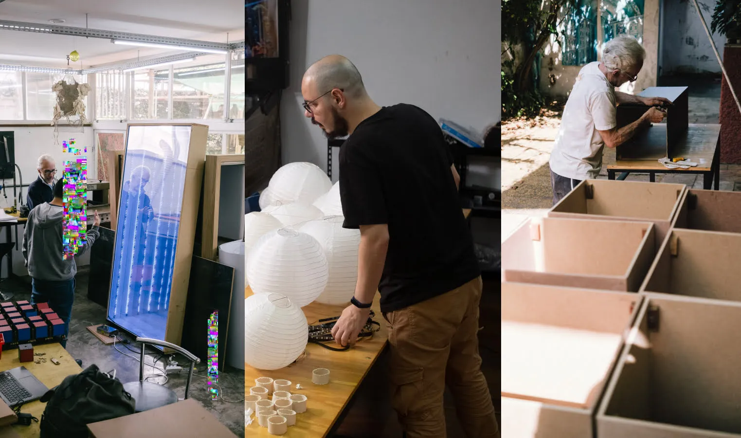 Criamos o Espaço Bolha no Casarão, uma área especial de exposição dos nossos projetos e também para apresentar duas novas criações: nosso espelho infinito e uma nuvem relampejante. A Bolha também levou para o Casarão três instalações interativas: (1) o jogo multiplayer Pong Against the Machine; (2) uma experiência de gamificação para o Twilio que usava uma vending machine para distribuir brindes; e (3) uma jukebox onde o público votava nas músicas da playlist.